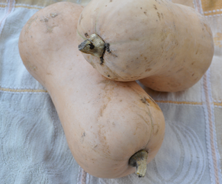 2. Add the stock and the savory, thyme and bay leaves. Bring to a boil, and then reduce the heat to a simmer. Add the sweet potato, squash and Parmesan rinds, and then simmer for 30 minutes.